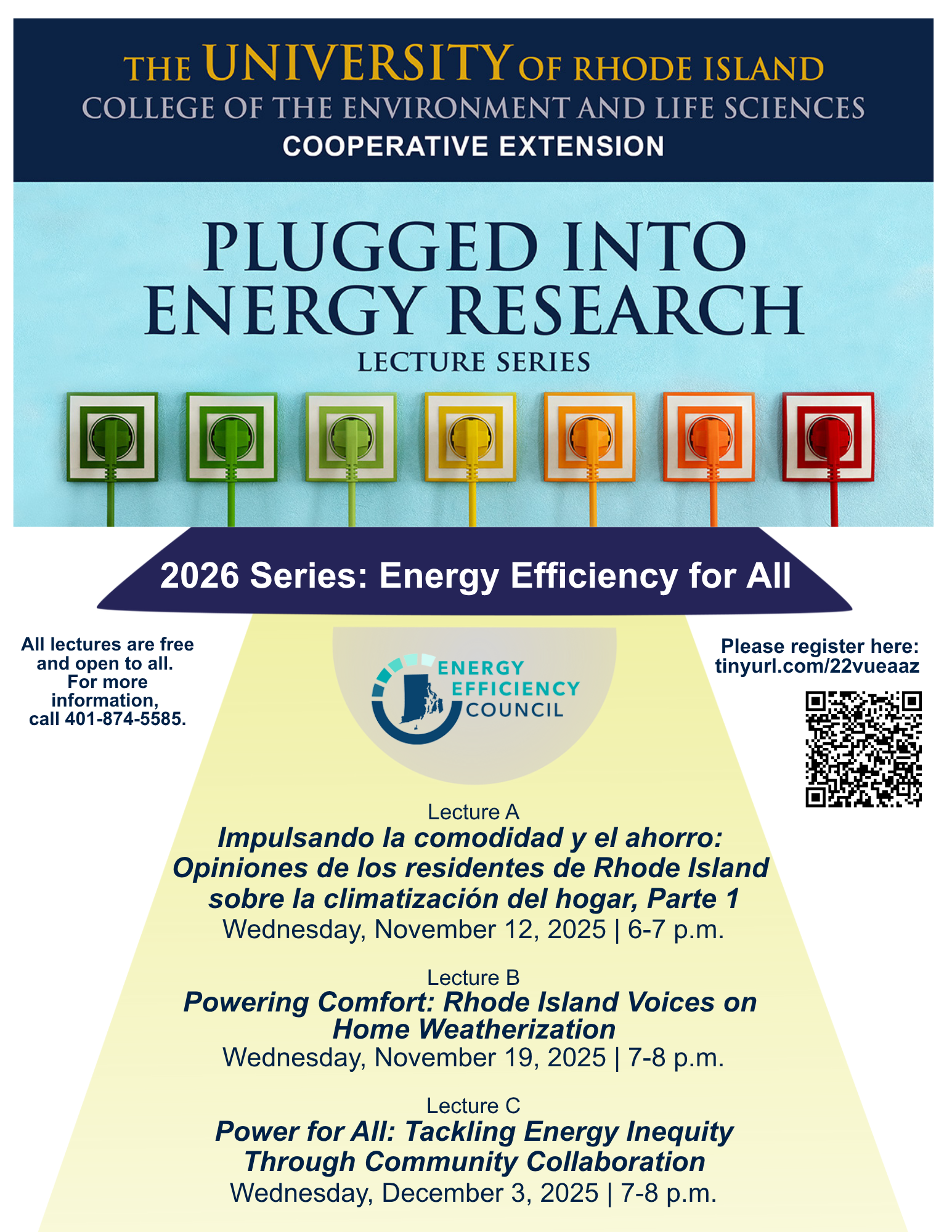 Looking for ways to make your home more comfortable while saving money on energy bills? Join us for the Fall 2025 URI Plugged Into Energy Research lecture series: Energy Efficiency for All.